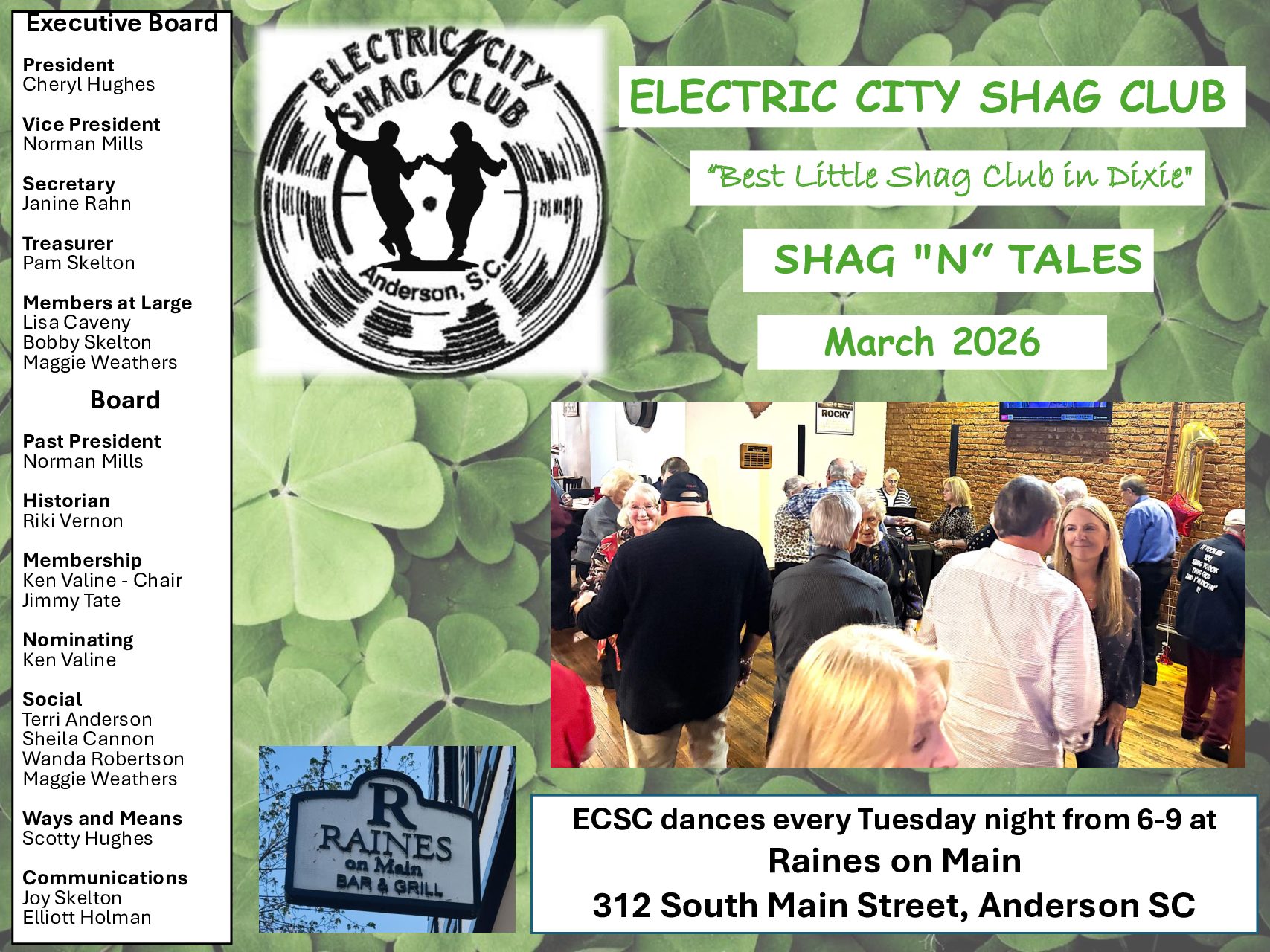 Founded in the heart of Anderson, SC, the Electric City Shag Club has been a cornerstone of the shag dancing community since its inception. Our club is dedicated to preserving the rich tradition of shag dancing, offering a welcoming environment for dancers of all levels. With a history rooted in the first city in the South to harness unlimited electric power, we celebrate our heritage through dance, camaraderie, and unforgettable events. Join us for a night of music, dance.